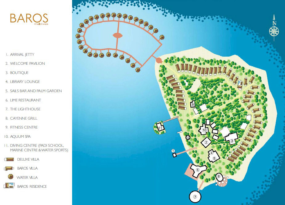 Baros Island Resort North Male Atoll de bulunmaktadır. Male havaalanından adaya ulaşım sürat motorları ile yapılmaktadır. Uzaklık 16 km olup yolculuğunuz 25 dakika sürmektedir
